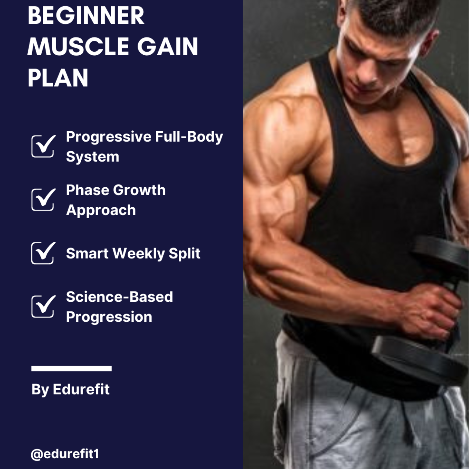 The EdureFit Beginner Muscle Gain Gym Workout Plan is ideal for those just starting their fitness journey. This program emphasizes learning proper form, building strength gradually, and establishing a consistent training routine. It’s designed to cover all major muscle groups, using full-body exercises and a push/pull/legs structure to maximize overall development.